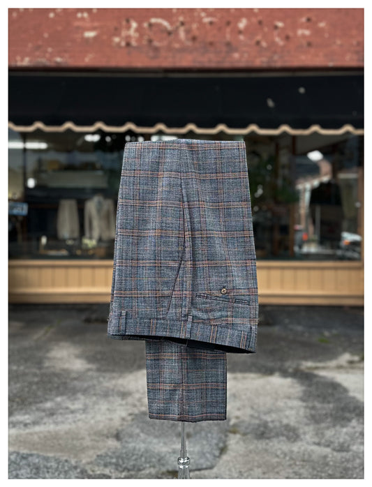 Plaid 3 Piece Suit - Grey / Cognac / Navy